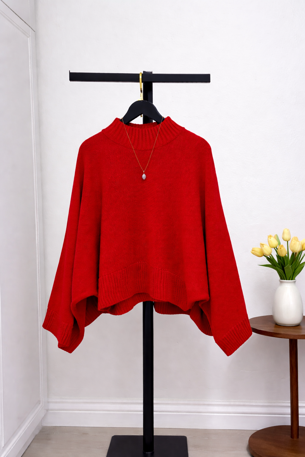 Geniş Kol Yarasa Kazak Kırmızı Kırmızı
