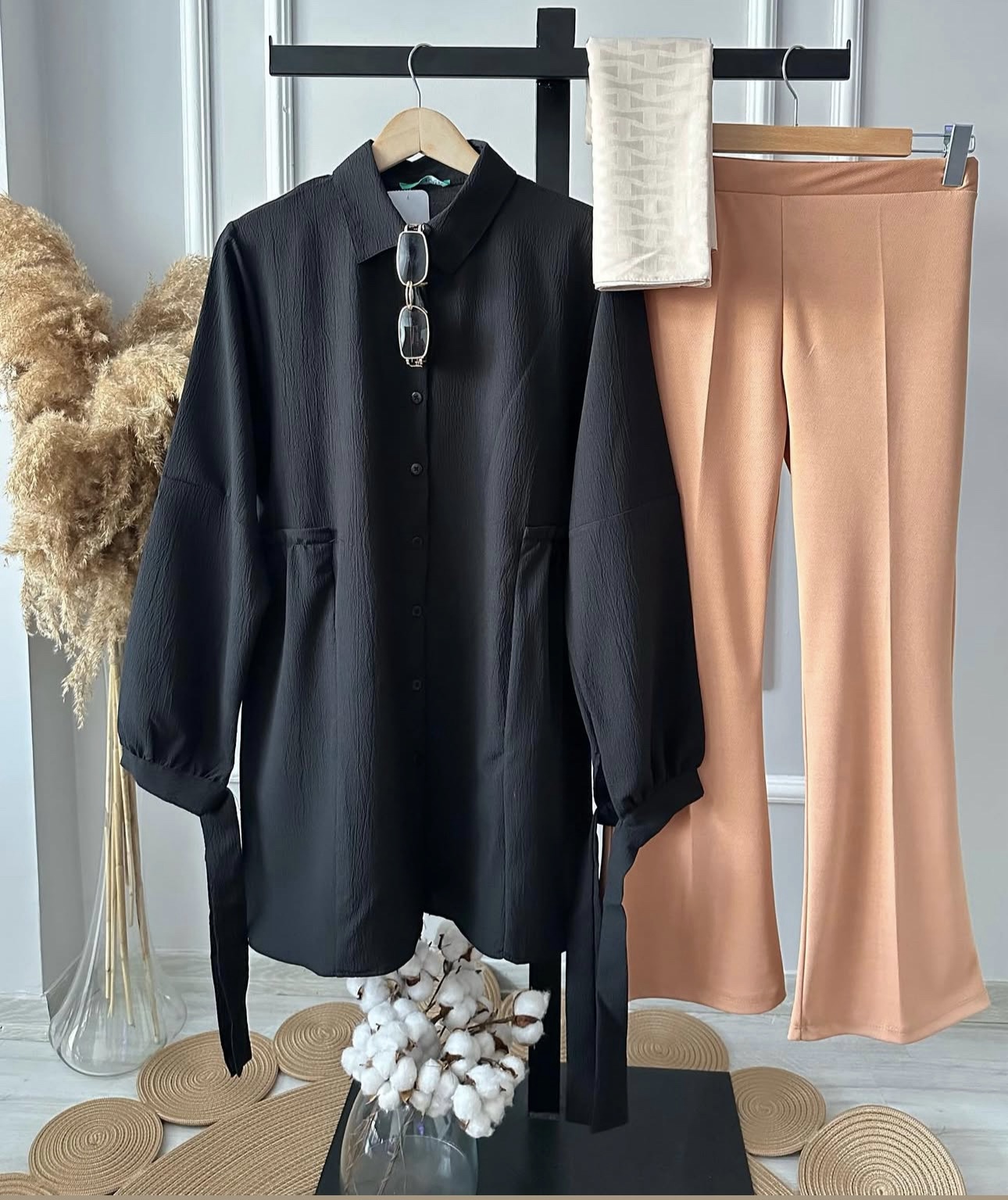 Gofre Gömlek Siyah Siyah